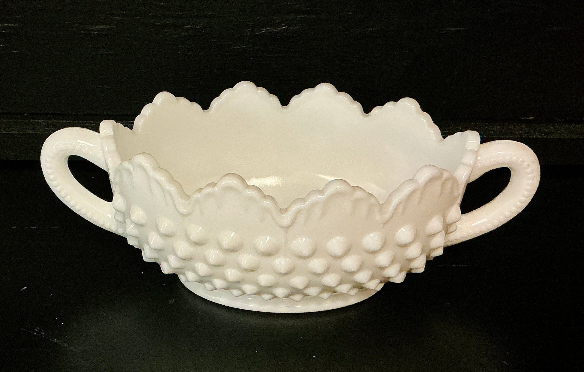 Vintage Fenton Hobnail Milk Glass Double-Handled Dish